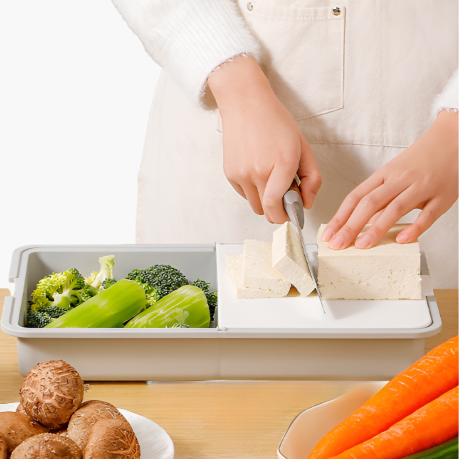 6 in 1シュレッダーキッチンカッティングボードは、カット・スライス・シュレッド機能を一体化し、調理効率を向上。省スペース収納が可能で、お手入れも簡単。